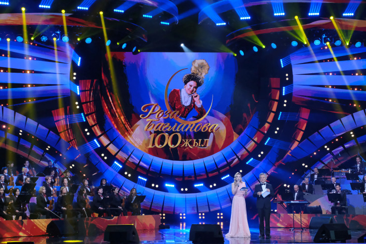 Кроме того, к 100-летию Розы Баглановой во Дворце республики состоялся также праздничный концерт «Ақмаңдайлым». Песни из репертуара легендарной певицы исполнили известные казахстанские артисты.